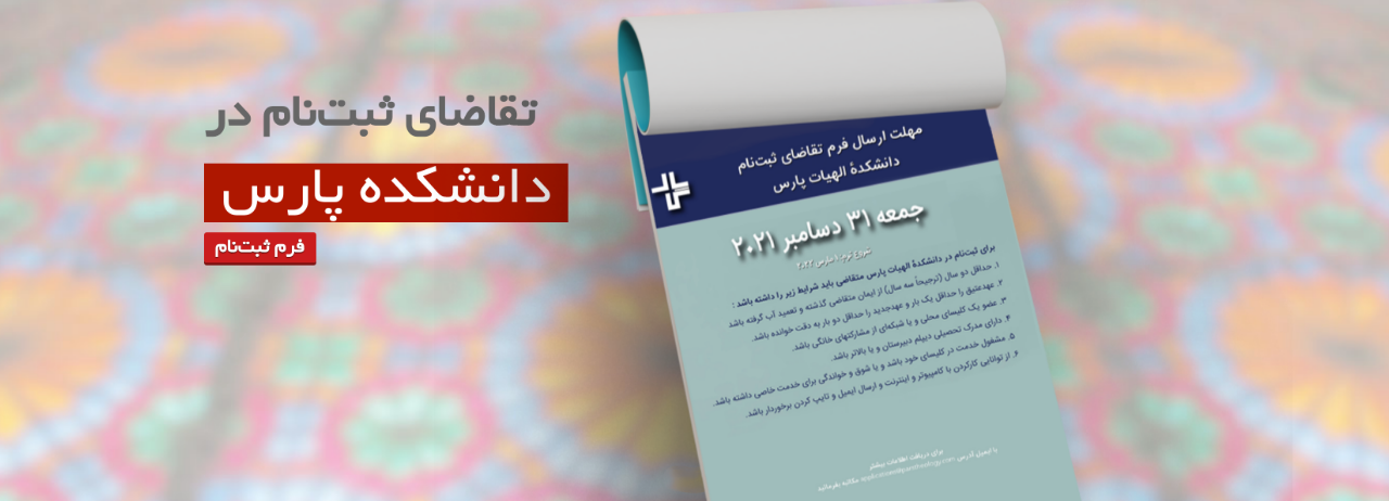 دوره تحصیل در الهیات مسیحی، به صورت تصویری و در ۱۲۸ واحد درسی توسط مدرسین و الهیدانان مجرب پارس تهیه و برای استفاده دانشجویان در همین سایت قرار گرفته است.